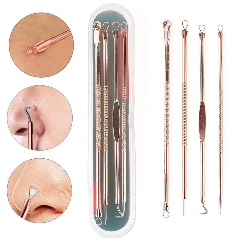 Name: Extractor de espinillas, limpiador para acné y puntos negros, conjunto de agujas de extrusión al vacío, palillo de acné limpiador para nariz, 4 Uds.